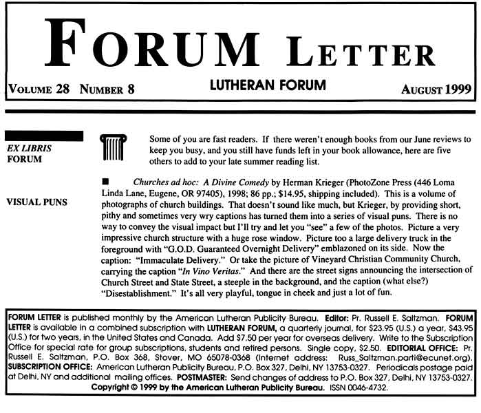 Lutheran Forum Letter